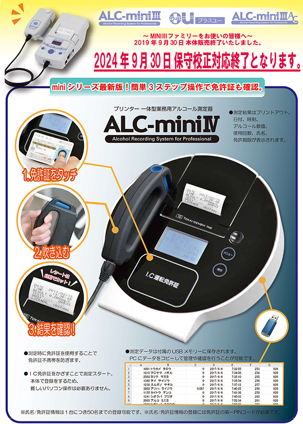 ALC-miniⅣ 免許証リーダー内蔵型アルコール検知器
