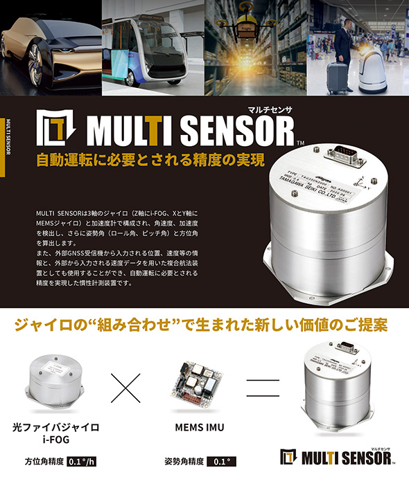 また、外部GNSS受信機から入力される位置、速度等の情報と、外部から入力される速度データを用いた複合航法装置としても使用することができ、自動運転に必要とされる精度を実現した慣性計測装置です。