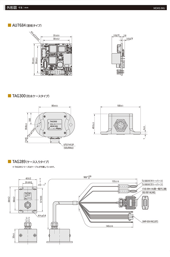 小型3軸慣性センサユニット_AU7684 TAG300 TAG289