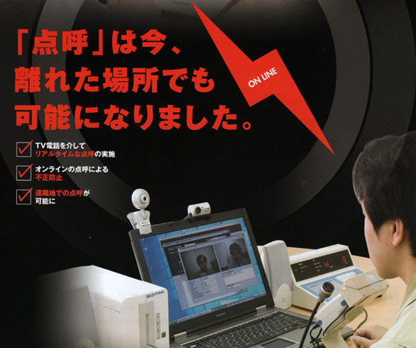 平成19年の国土交通省令の改正により、安全優良事業所に認定された[Gマーク認定事業者]は、従来定められていた対面式点呼を、国土 交通大臣が定めたIT機器によって代用できることとなりました。 東海電子の「IT点呼」は、ネットワークを介して管理部門と現場事業所をリアルタイムで結ぶことで、時間と手間を節約しながらも毎日の確実 な点呼を可能にした、新時代の対面式点呼システムです。もちろん点呼記録の保存も実現。毎朝の点呼時に自動で社員スタッフの労務管理 が可能になります。